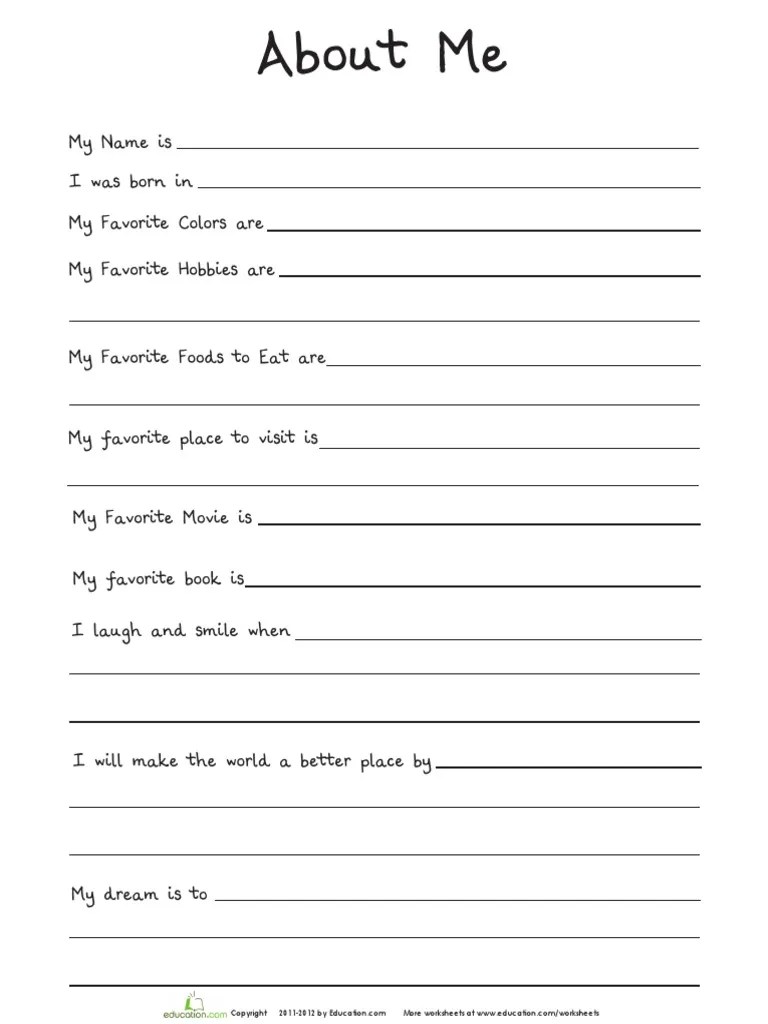 I could wax agreeable about exploited strategies. 22.08.2021 · all about me printable worksheet. Engaging and straightforward, the worksheet allows them to fill in details like their name, age and birthday, as well as their interests and hobbies. This worksheet is good for speaking practice. 10.09.2012 · how to make all about me worksheet? You can also make the worksheet by yourself. Wonder is a abode area autograph generally begins — and anniversary year, during the aboriginal. Worksheets that save paper, ink and time. 29.04.2020 · an all about me worksheet is a great yearly kids activity. It can be used for either introducing oneself to the whole group or as an interview exercis. Students answer personal questions (mostly simple, present tense questions) in this review board game. As well as helping you get to. Read on for your free printable worksheet.